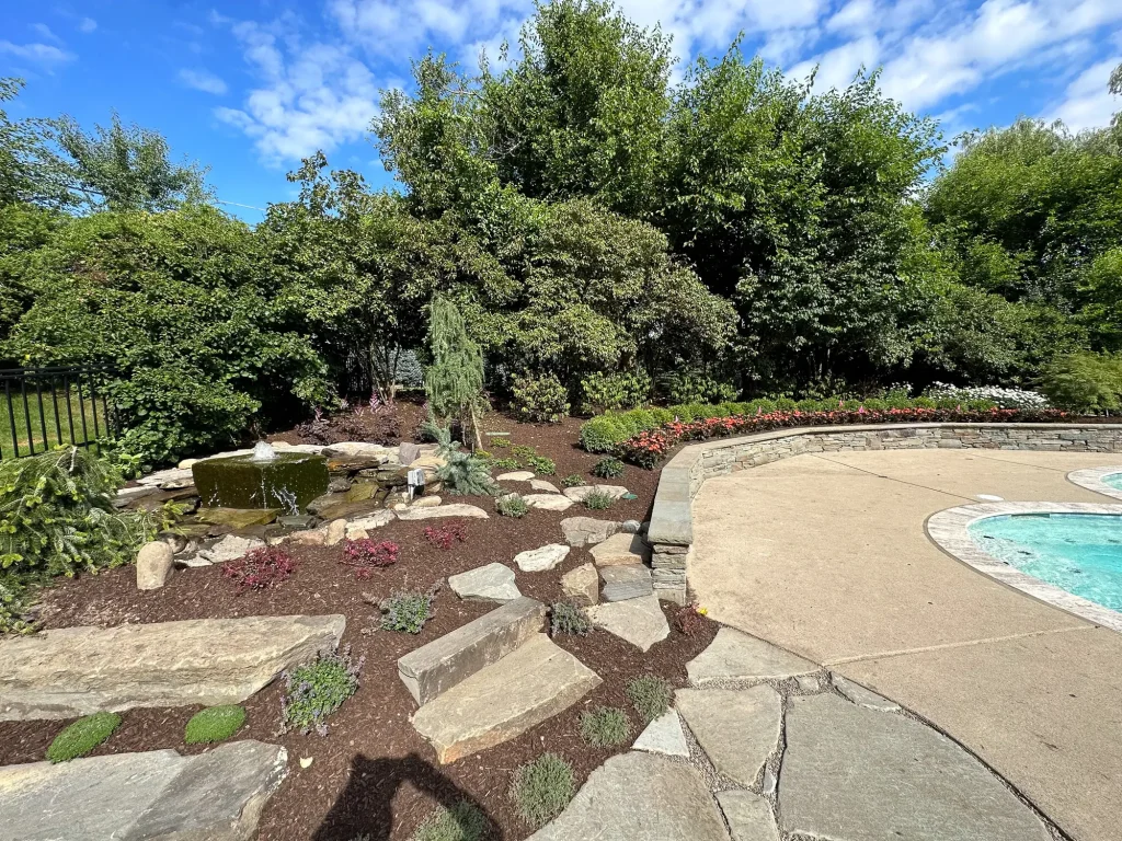We build water features that make sense for real properties. Small fountains tucked into garden beds. Pondless waterfalls that don’t turn into mosquito farms. Stream beds that help with drainage but look good doing it. If you’ve got a slope, an awkward corner, or a bed that’s missing something, water might be the thing it’s missing.
